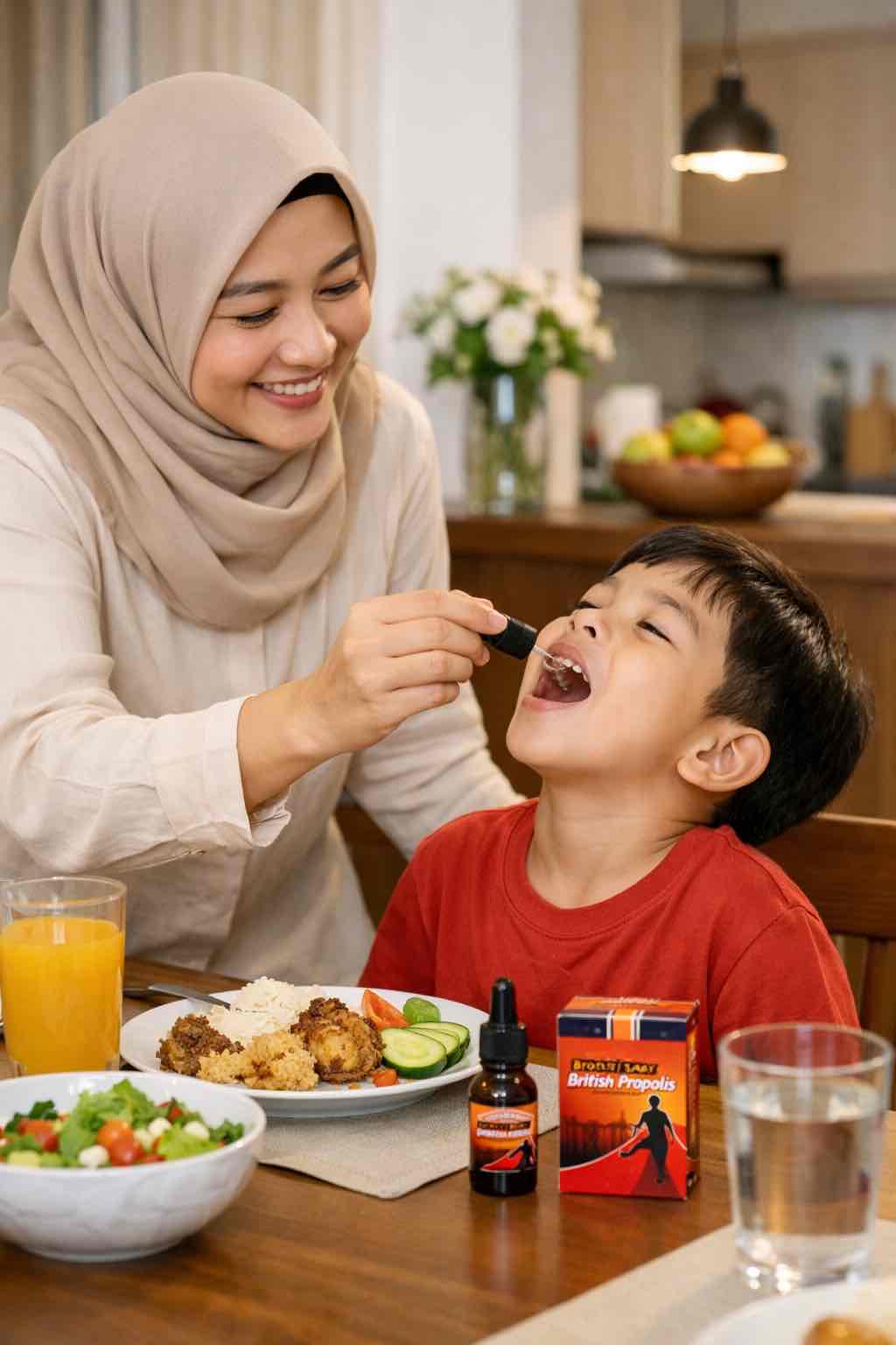 British Propolis — formula eksklusif dari sarang lebah pilihan Inggris, kaya antioksidan dan antibakteri alami untuk menjaga daya tahan tubuh Anda setiap hari.